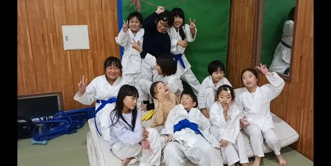 私たちの空手道場では毎週日曜日と金曜日に別会場で稽古をしていますが、このうち年内最後となった日曜日の稽古後には、帰らずに残っていた子供たちで写真を撮りました。